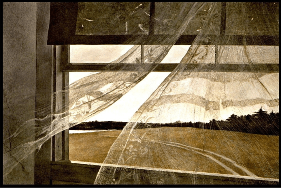 For years, I felt like an aesthetic wanderer without a permanent address. On one hand, I could lose myself for hours in the boundless, ethereal soft light of a Monet. Yet, on the other hand, I found a strange spark in the sharp, provocative wit of a Banksy. I often wondered: was there ever a space wide enough to hold these two sides of me that seemed so at odds? That was until I found myself standing before a ‘window’, a painting of a tattered lace curtain dancing in a sea breeze by Andrew Wyeth. The moment a chill ran down my spine, I knew I wasn’t just looking at art; I was looking at a homecoming. It turns out my soul has always lived in a place that isn’t loud, yet lingers long within the heart: a realm called Poetic Realism.